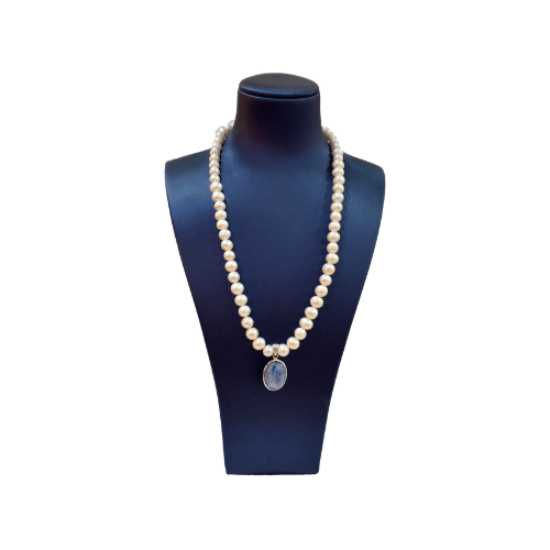 Sodalite- Fresh Water Pearl with Silver SettingSodalite- Fresh Water Pearl with Silver Setting